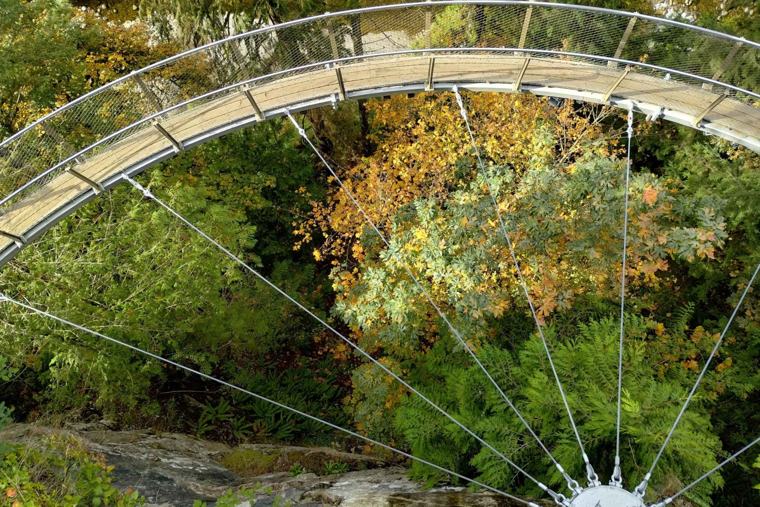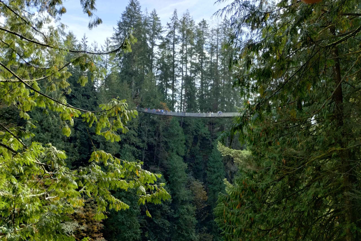 この世界的に有名な橋は、キャピラノ川から 230 フィートの高さに架かっており、幅は 450 フィートに及び、樹上から爽快な眺めを楽しめます。