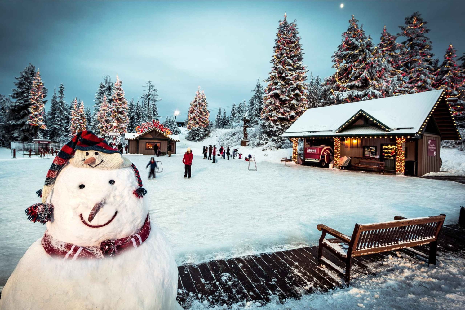 Em seguida, vistas ainda mais deslumbrantes do Skyride até o pico da Grouse Mountain. No topo da famosa montanha é onde você será presenteado com uma fantástica refeição cênica no Altitude Restaurant.